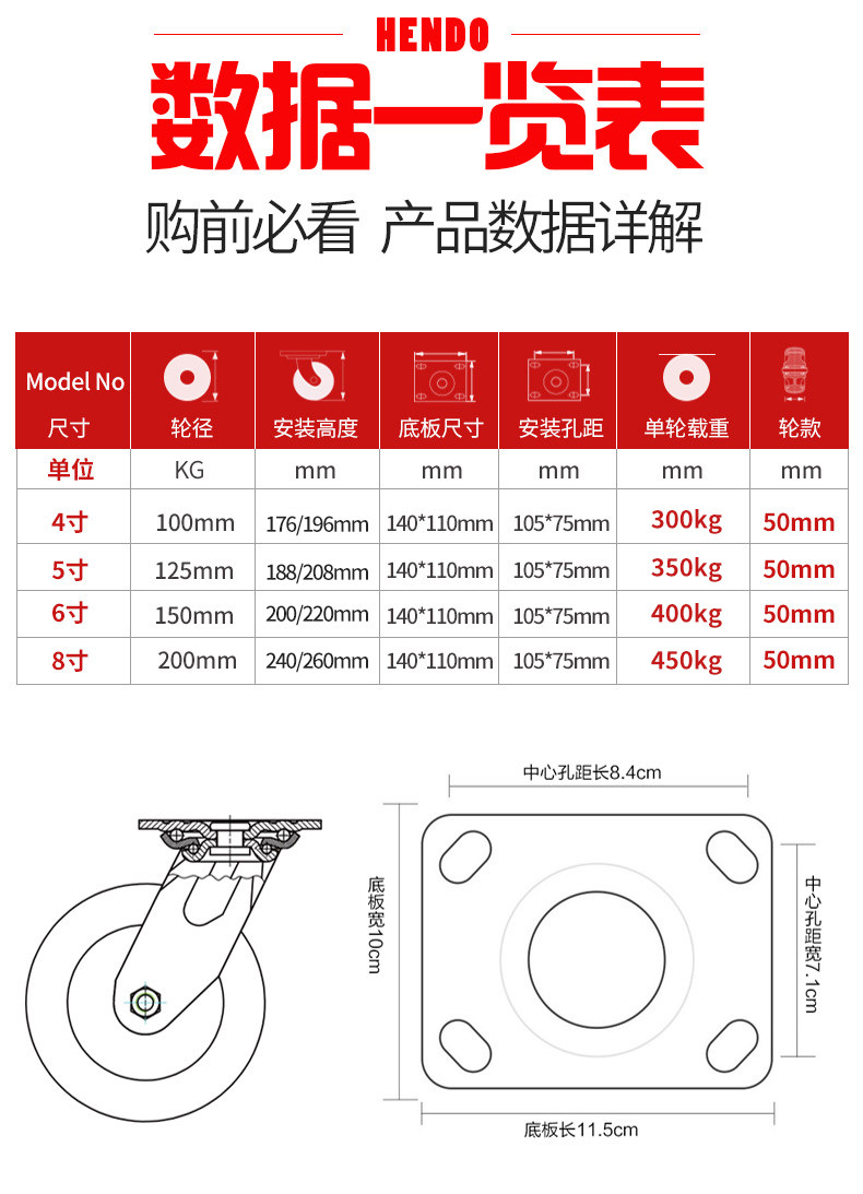 4" Universal 4" Directional 5" Universal 5" Directional 5" Universal with Brake 6" Universal 6" Directional 6" Universal with Brake 8" Universal 8" Directional 8" Universal