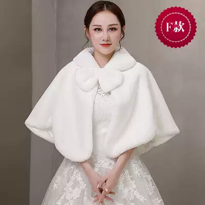 Bridal wedding wool shawl winter female wedding 2019 warm fur white red long-sleeved large size dress jacket