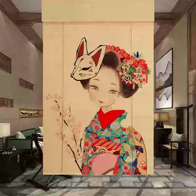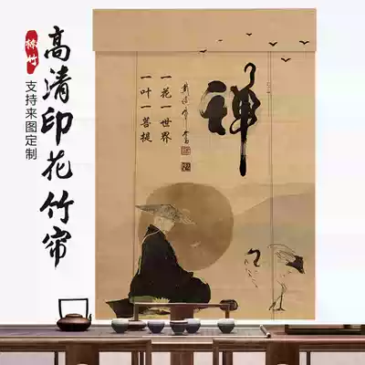 Printed bamboo window roller blind Chinese-style landscape Lady painting decoration door curtain partition retro Zen tea room mood homestay
