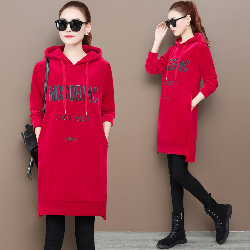Gush sweater lady 2021 autumn winter new gold velvet medium long version loose thickened double-sided suede hat blouse