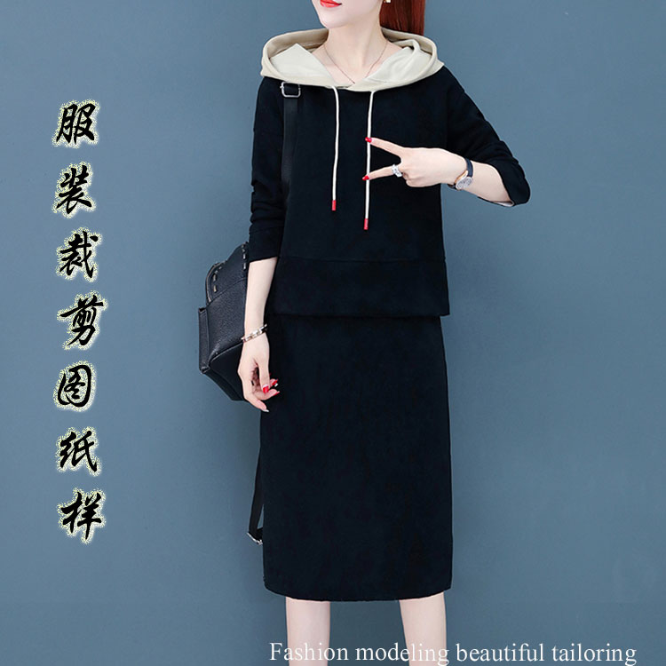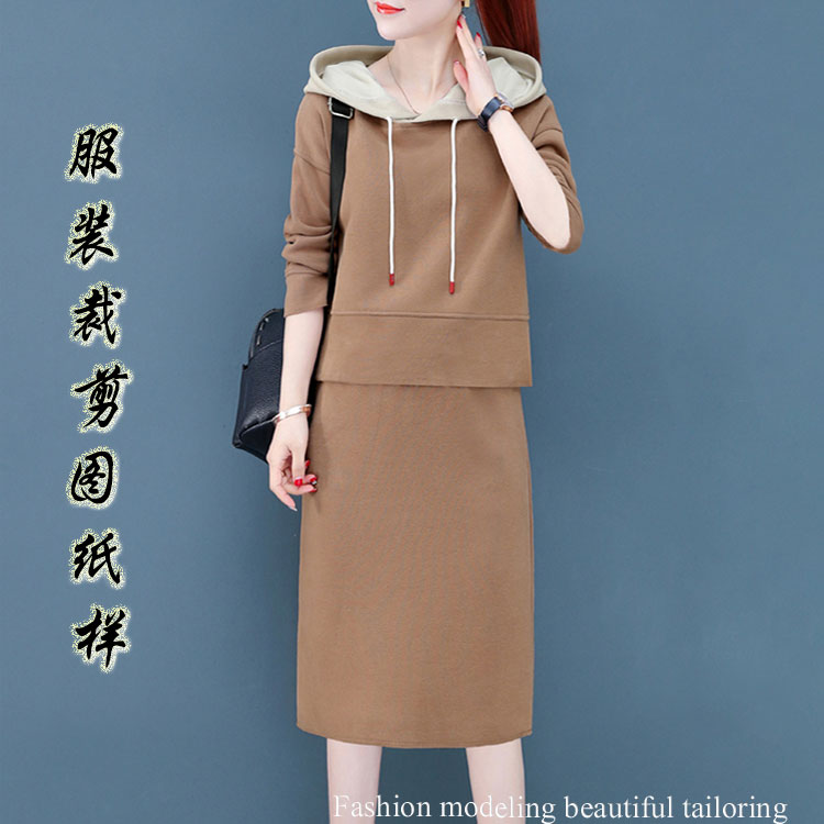 Loose Tandem Hat Sportswear Jacket Half Body Dress Paper-Like Dress Spring Autumn New Two-piece Style Suit Boilerplate Tailoring