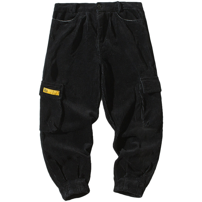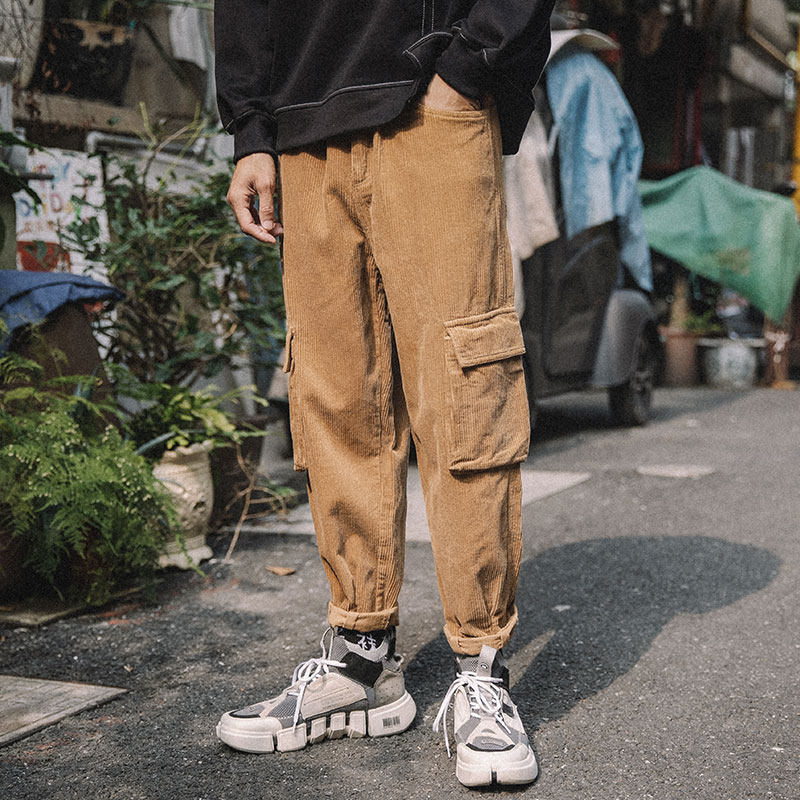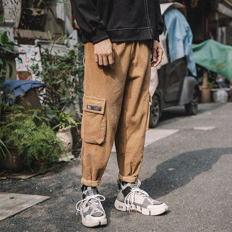 The whole village 2020 corduroy overalls men's Japanese spring and autumn nine points straight loose all-match personality trousers casual