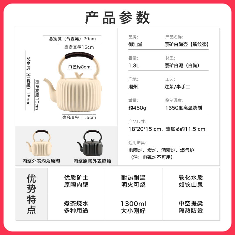 Japanese pottery pot tea kettle white pottery pot large capacity ceramic tea boiler high temperature resistant household tea pot single pot