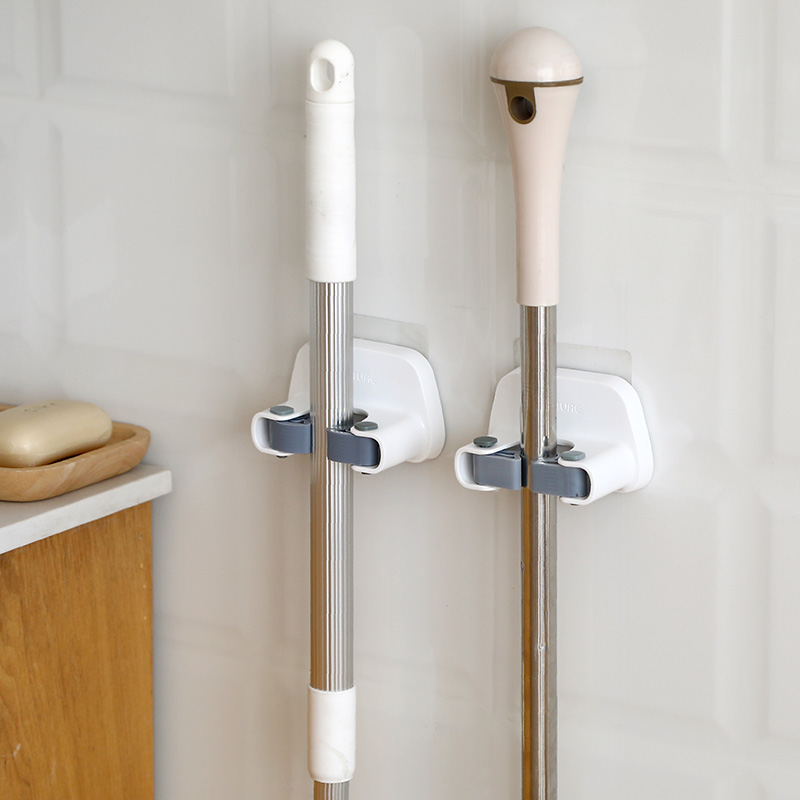 Non-perforated mop hook Strong adhesive broom rack Bathroom household non-nailed wall-mounted mop clip