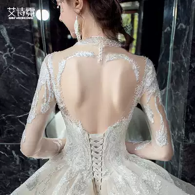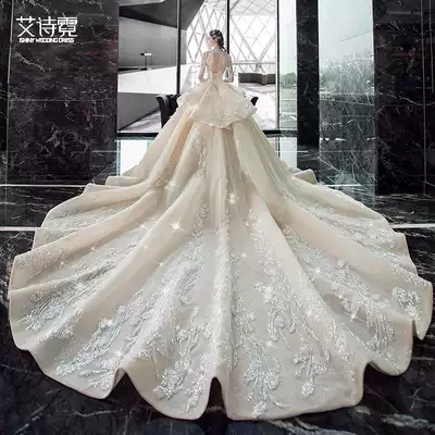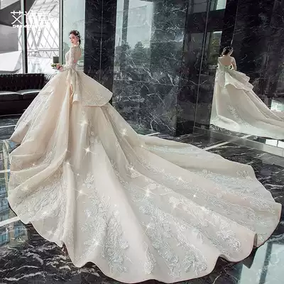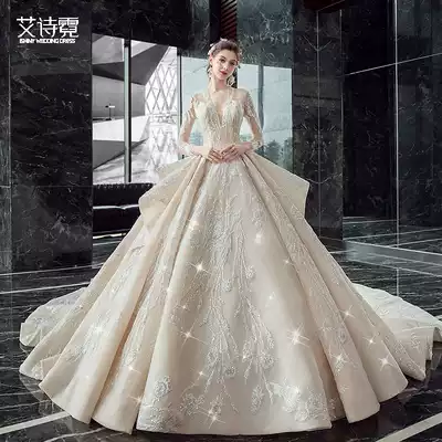 Main yarn wedding dress 202021 new big trailing female bride starry sky dream thin luxury long-sleeved simple French autumn