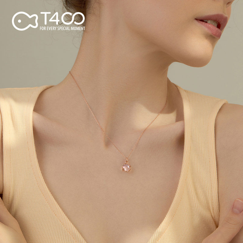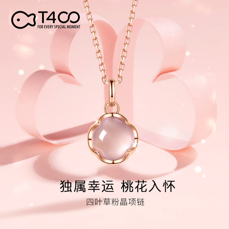 T400 pink crystal necklace 2021 new women's summer all-match sterling silver light luxury niche clavicle chain peach blossom pendant
