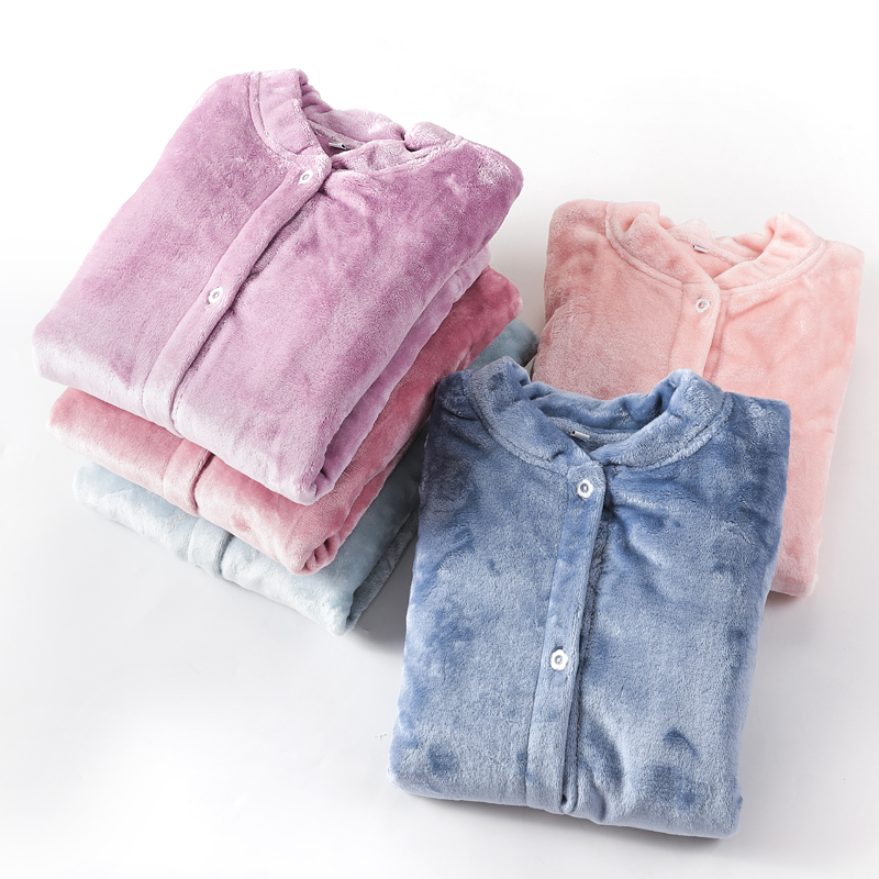 Single One-piece Cardiff Blouse Lady Autumn Winter Coral Suede Warm Plus Suede Long Sleeve Flannel Loose home Sleeping Clothes