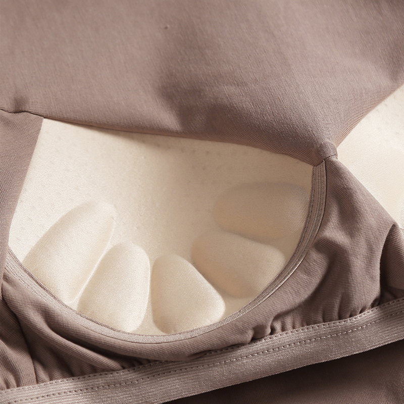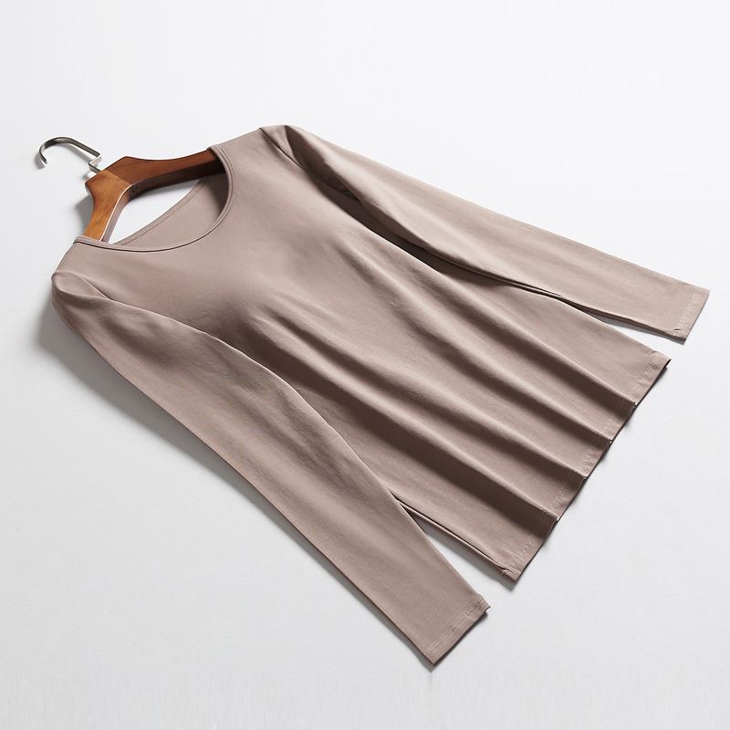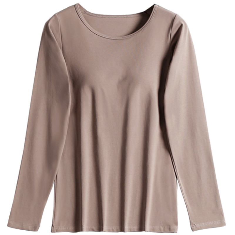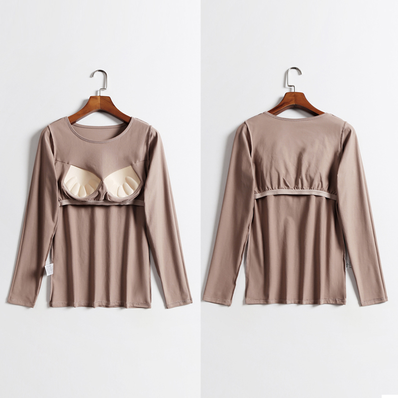 Long-sleeved T-shirt with chest pad Women's autumn and winter bra-free cup one-piece cotton base shirt Home clothes pajama top