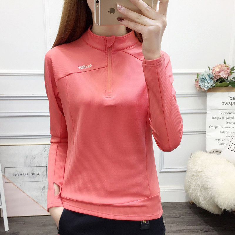 Fall Outdoor Female Collar Speed Dry Clothing Plus Suede Warm And Breathable Fitness Clothing Running Sports Casual Blouse Mountaineering