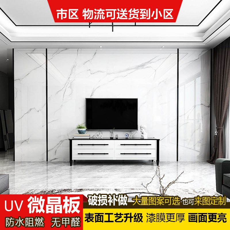 UV board TV background wall imitation marble jazz white fish belly white pvc waterproof living room decoration microspar mural