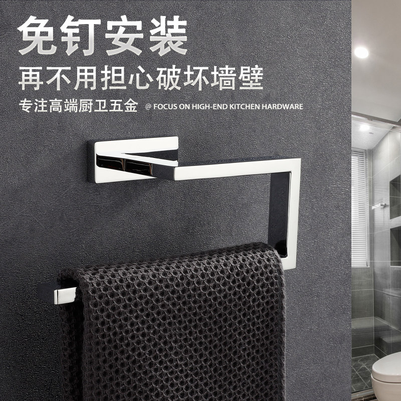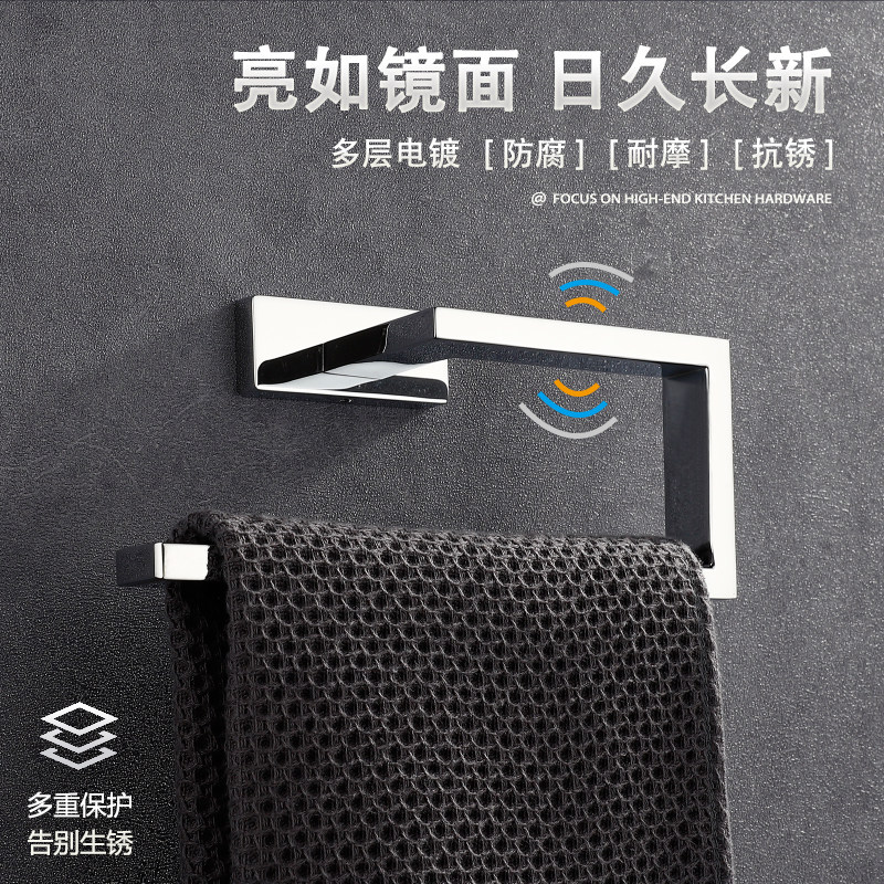 All copper towel ring Free hole powder room square hanging ring Nordic hardware pendant Bathroom hand towel rack ring