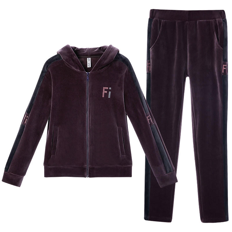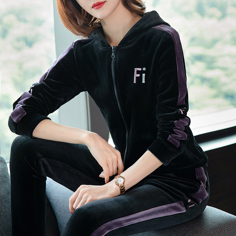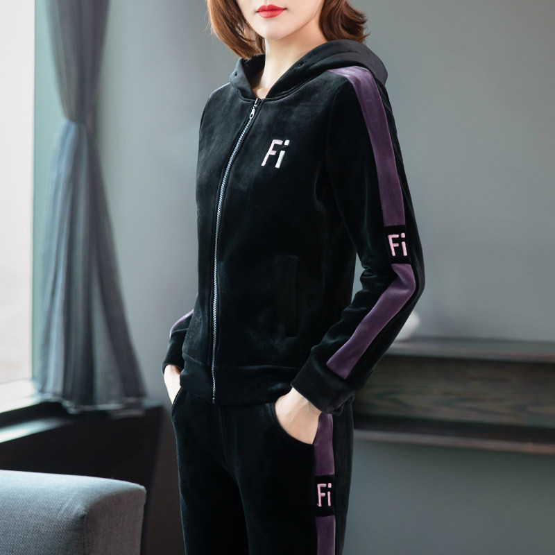 Golden Velvet Suit Woman Winter Thickening 2021 Autumn Winter New Plus Suede Leisure Sport Suit Foreign Wear two sets