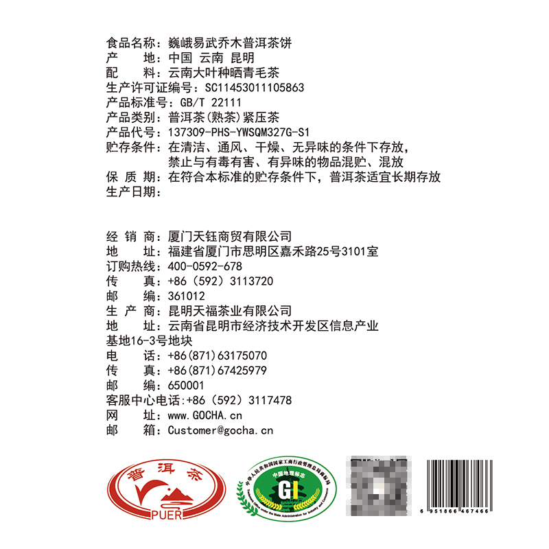 Buy 1 hair 2 days Fotea tea majestic Eusu Mountain Pu'er tea Pizza Cooked Tea Cake Cooked p Yunnan Big Leaf Seed 327g