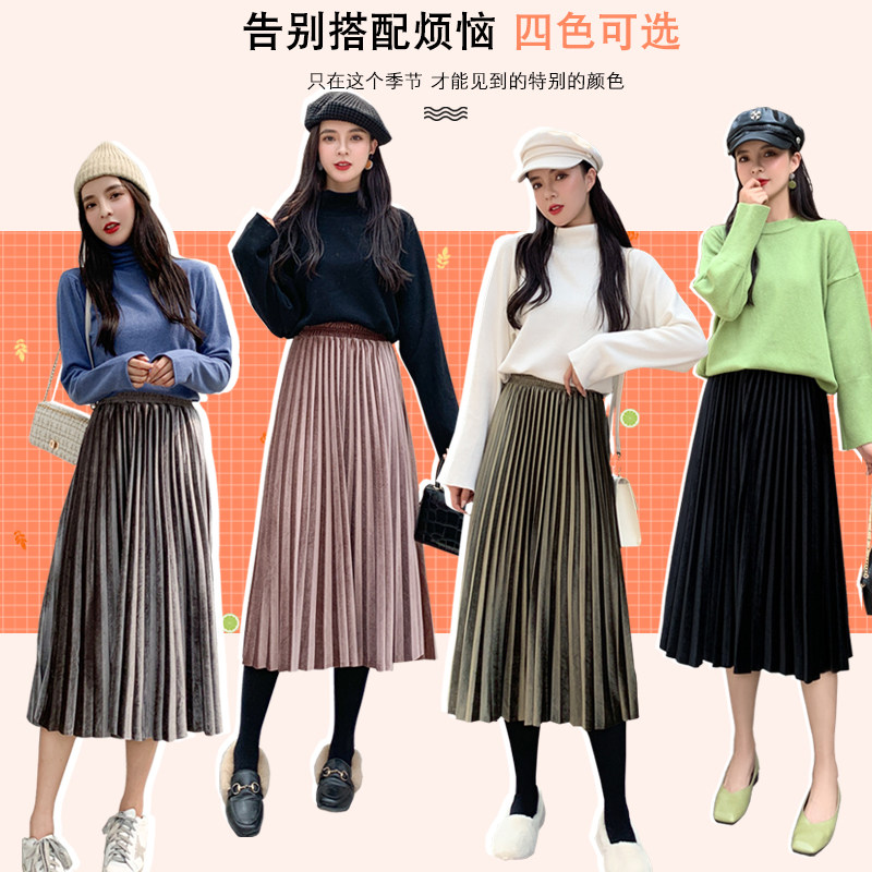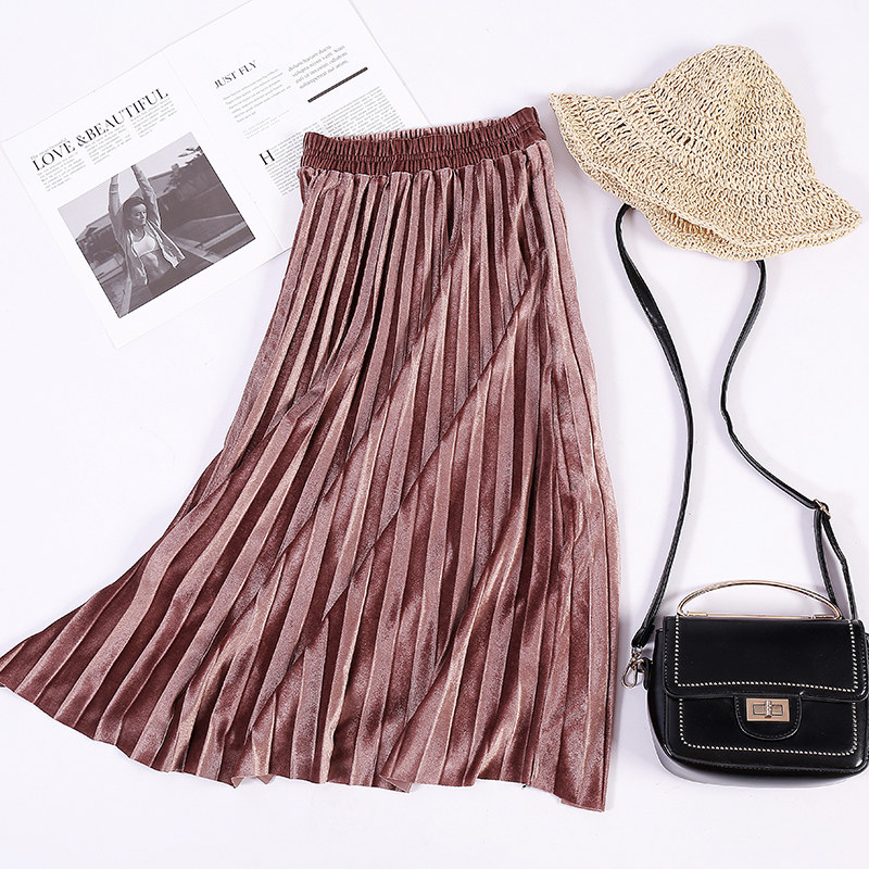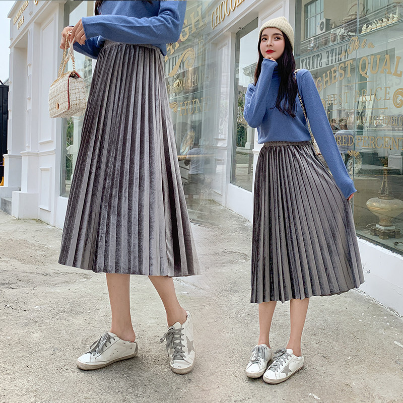 Pleated skirt skirt autumn and winter women's 2022 new gold velvet mid-length velvet high waist a-line winter long skirt
