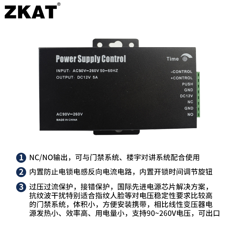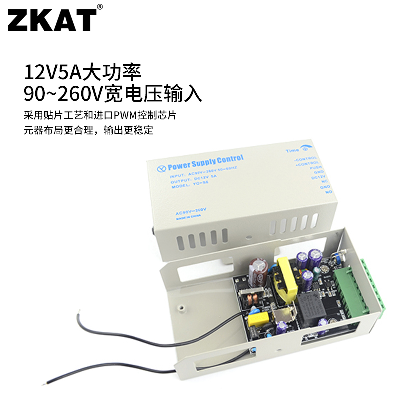 ZKAT access control system special power supply 12V5A switching power supply Small volume access control power supply wide voltage 90-260V