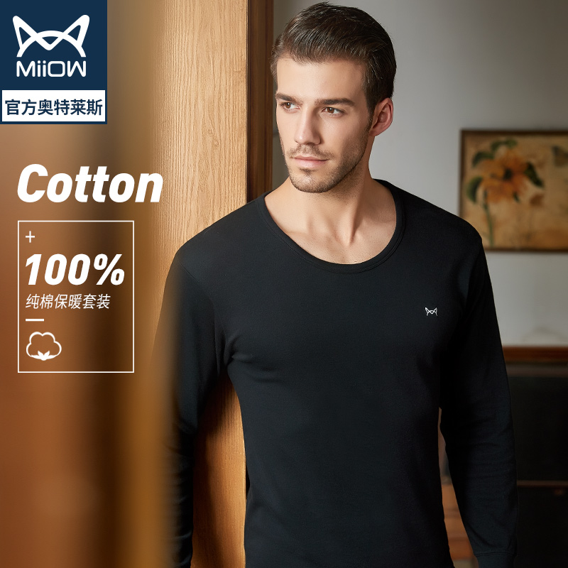Cat person 100% pure cotton thermal underwear men's autumn clothes autumn trousers suit men's all-cotton thread clothing line pants winter suit-Taobao
