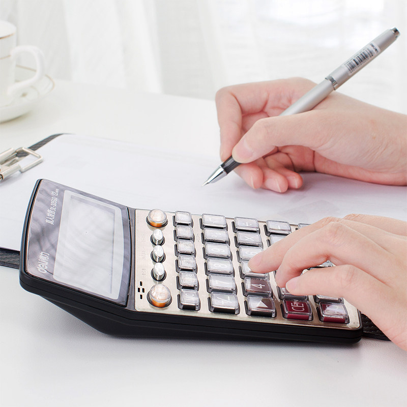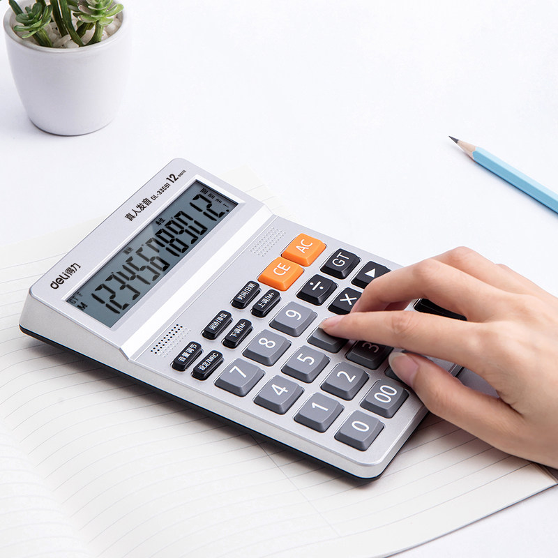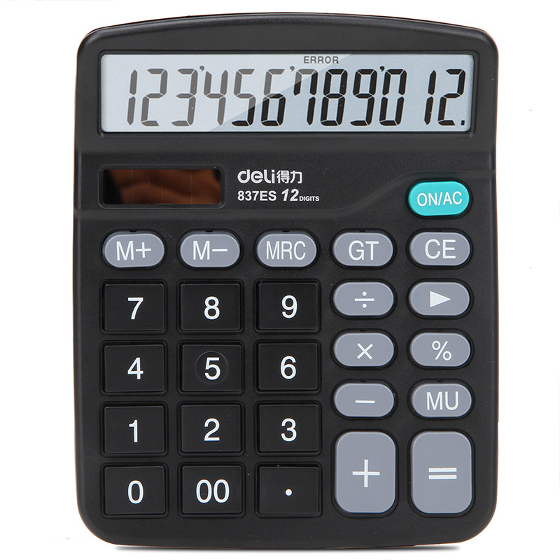 deli right-hand 837ES calculator double power solar powered big screen big button students with 12 computer office supplies