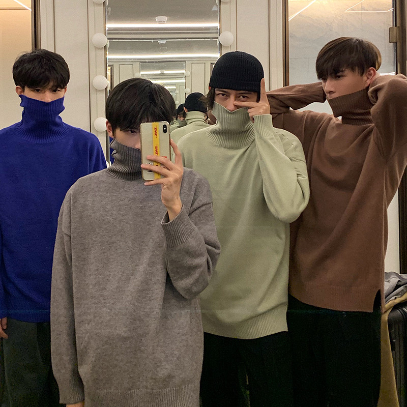 Hualun autumn and winter base high-collar sweater men and Korean edition of the tide students pure color loose knitting sweater