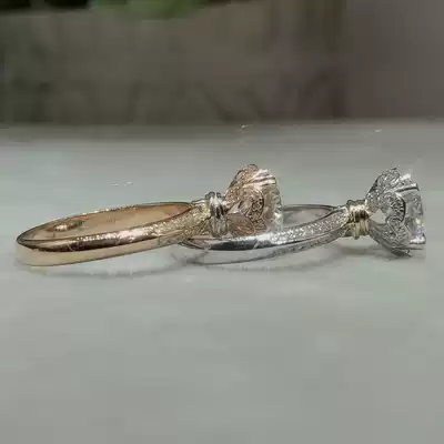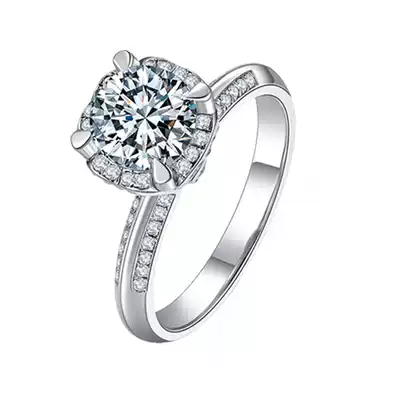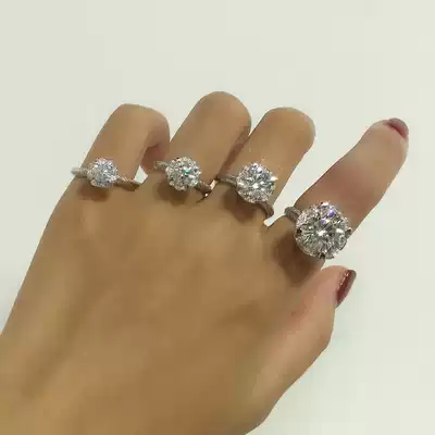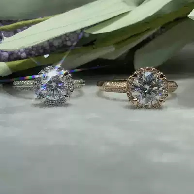 18K platinum ring female D-color diamond ring double-color bib glass flower Flower Flower Bud 4-claw luxury female ring