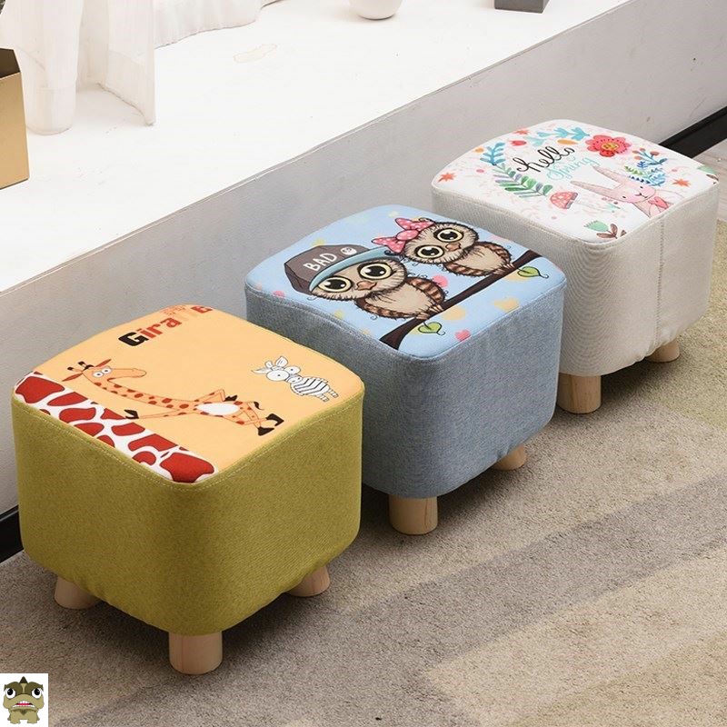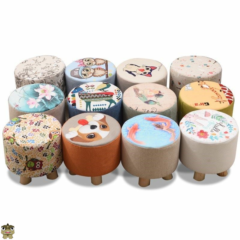 White Pan Flower Four-legged Round Stool Cartoon Iron Tower Four-legged Round Stool Giraffe 4 Legs Round Stool Cute Cat Four Legs Round Stool Light Grey Green Blue Rich Fish Four Legs Round Stool Rice