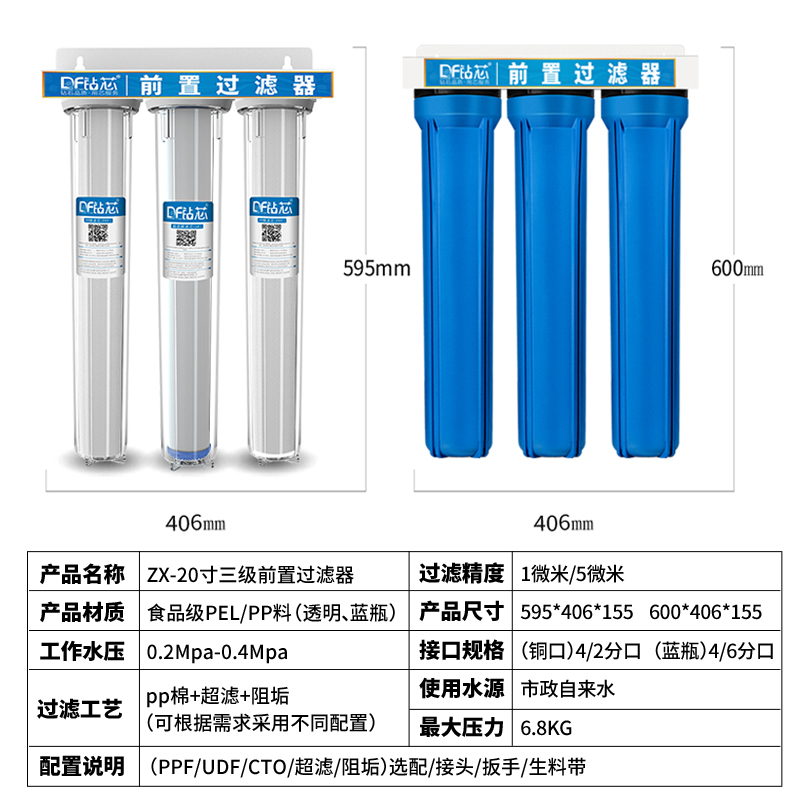 20 Inch Tertiary Front Filter Tap Water Explosion Protection Filter Bottle Kitchen Home Full House Big Flow Blue Bottle Water Purifier