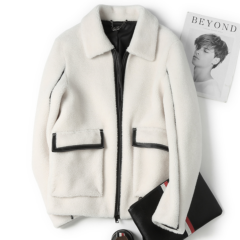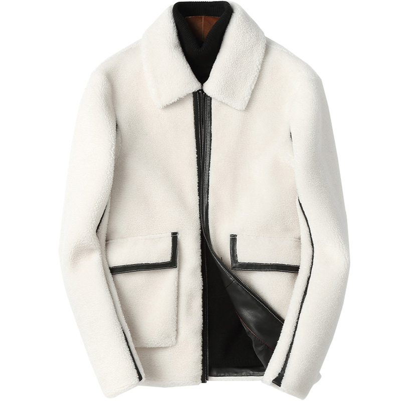 Classic and timeless autumn and winter sheep shearing men's coat lamb fur lapel integrated fur jacket trend