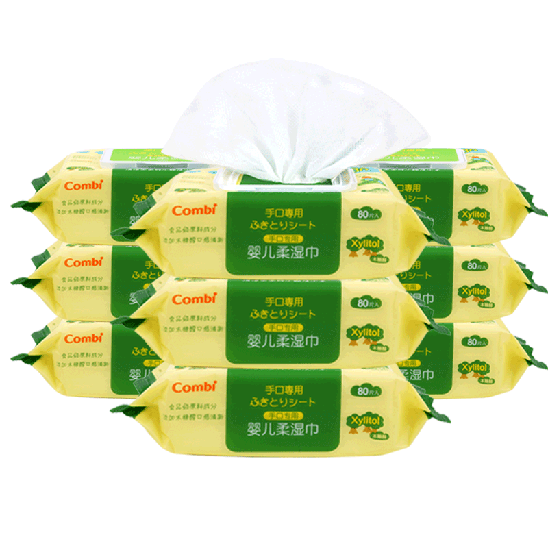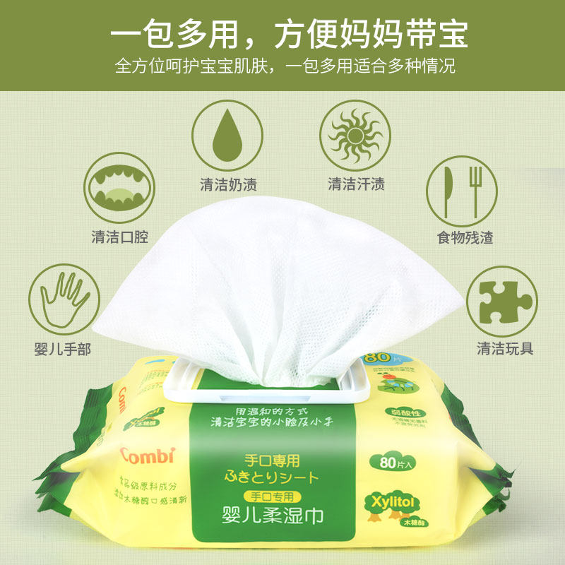 combi baby wipes Baby hand and mouth special wet wipes Newborn infants with lid large bag 80 pumping 9 packs