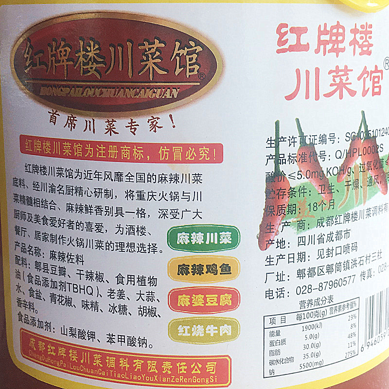 Hongpailou Sichuan Restaurant 908g Hot Pot Seasoning Spicy Seasoning Agricultural Transfer Non-Chongqing Fragrant Pot Spicy Sichuan Seasoning