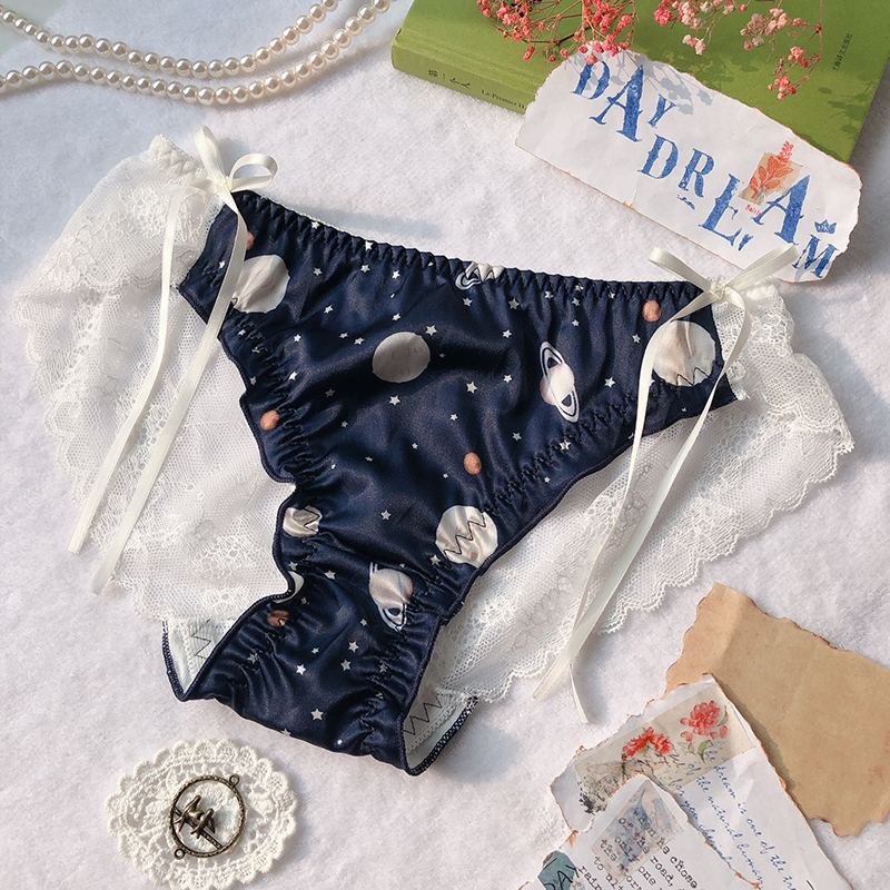 White Peach Honey Tea~Super Fairy Girls Panties Hollow Breathable Middle Waist Ribbon Bow Thin Briefs Milk Silk
