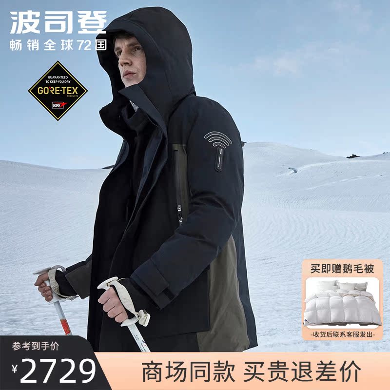 Bosideng down jacket men's 2022 new GORE-TEX waterproof goose down warm contrast color jacket B90142823
