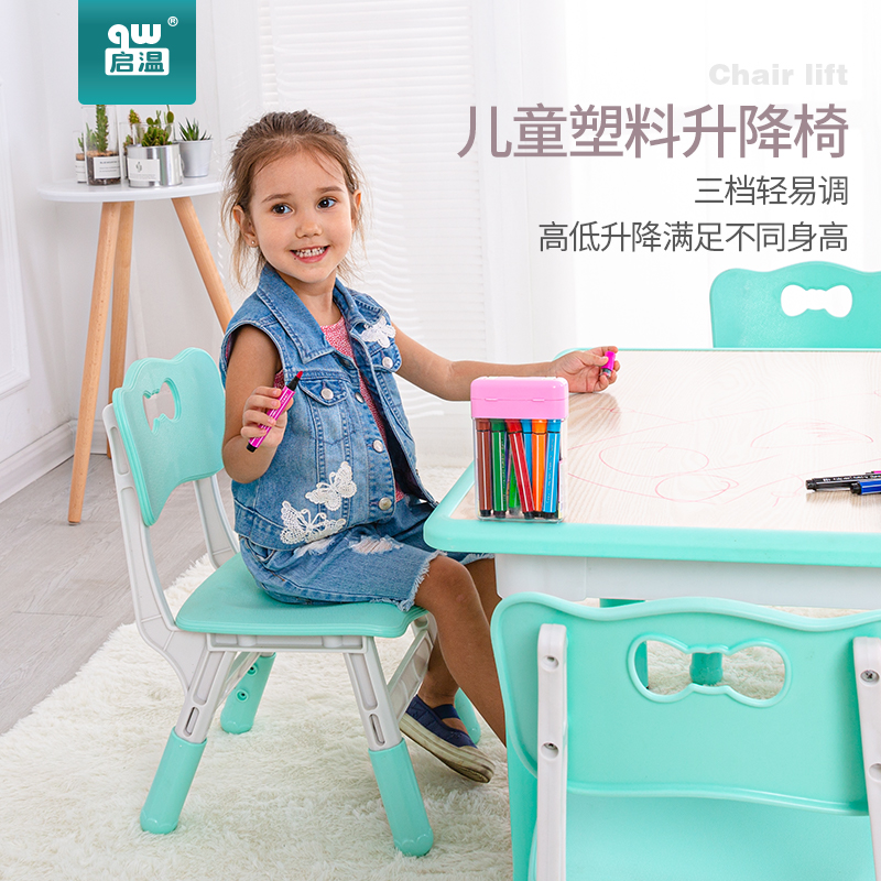 QW Children's thickened plastic cartoon backrest small bench household can lift height adjustment kindergarten baby seat