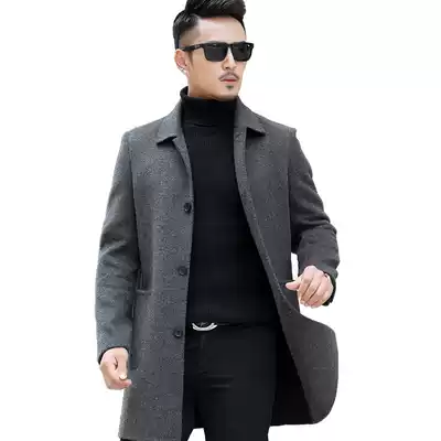 Double-sided tweed coat men's medium and long version of middle-aged winter thickened coat warm inner tank young men's clothing woolen coat