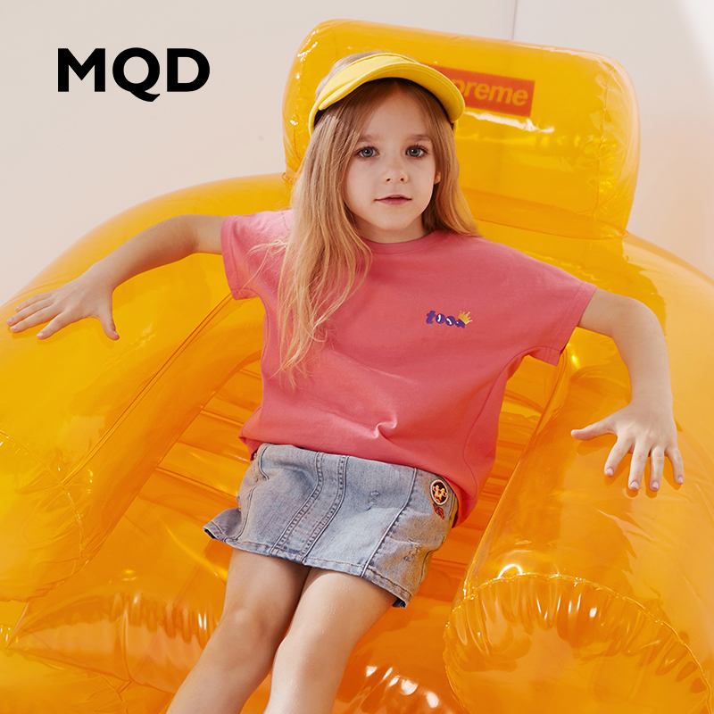 MQD child clothing girl T-shirt 2022 spring summer new Korean version loose T-shirt letter printed short sleeve red tide