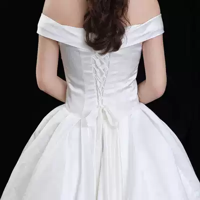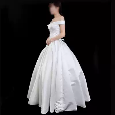 Huqiu satin wedding dress photo studio tour shoulder evening dress simple large size wedding dress customization