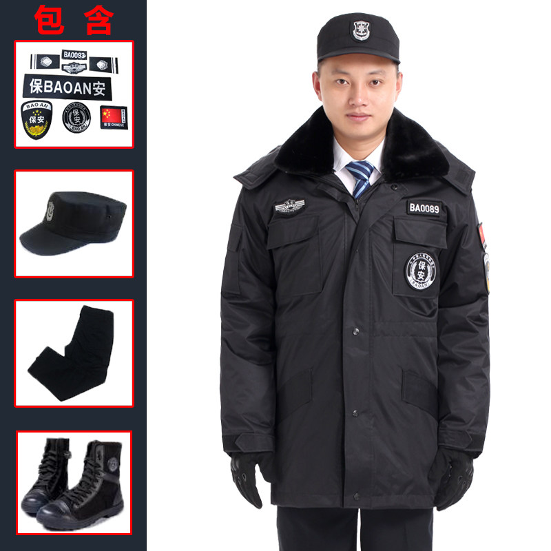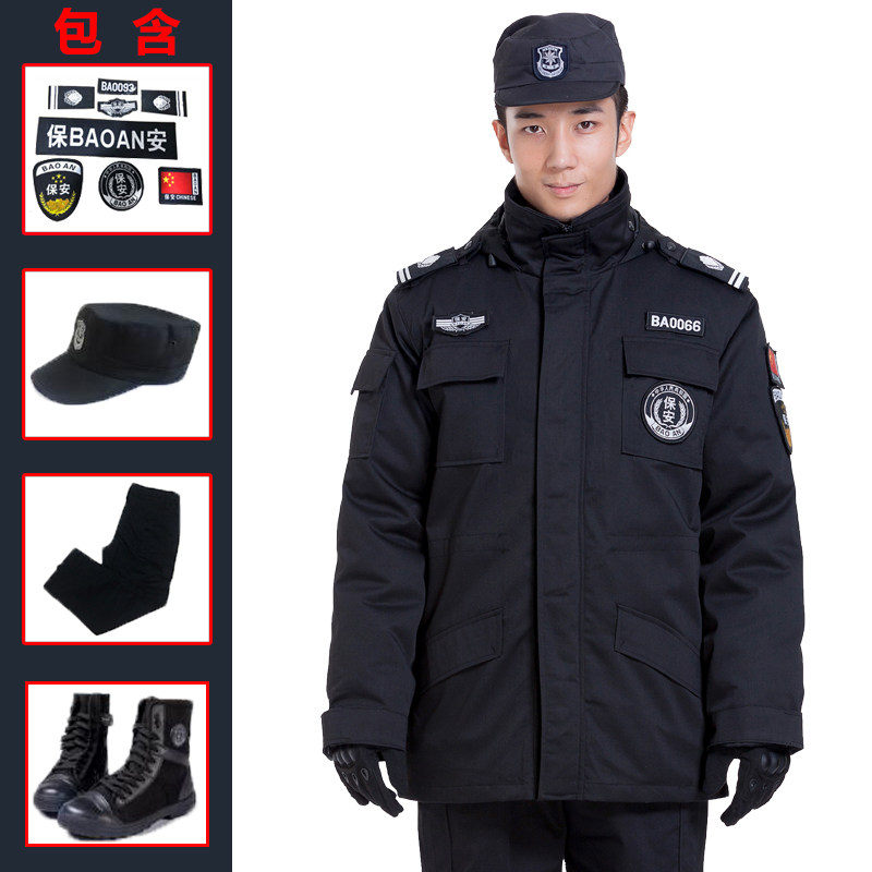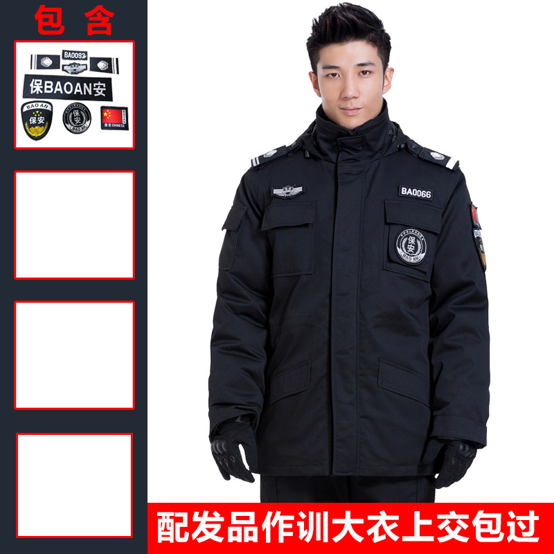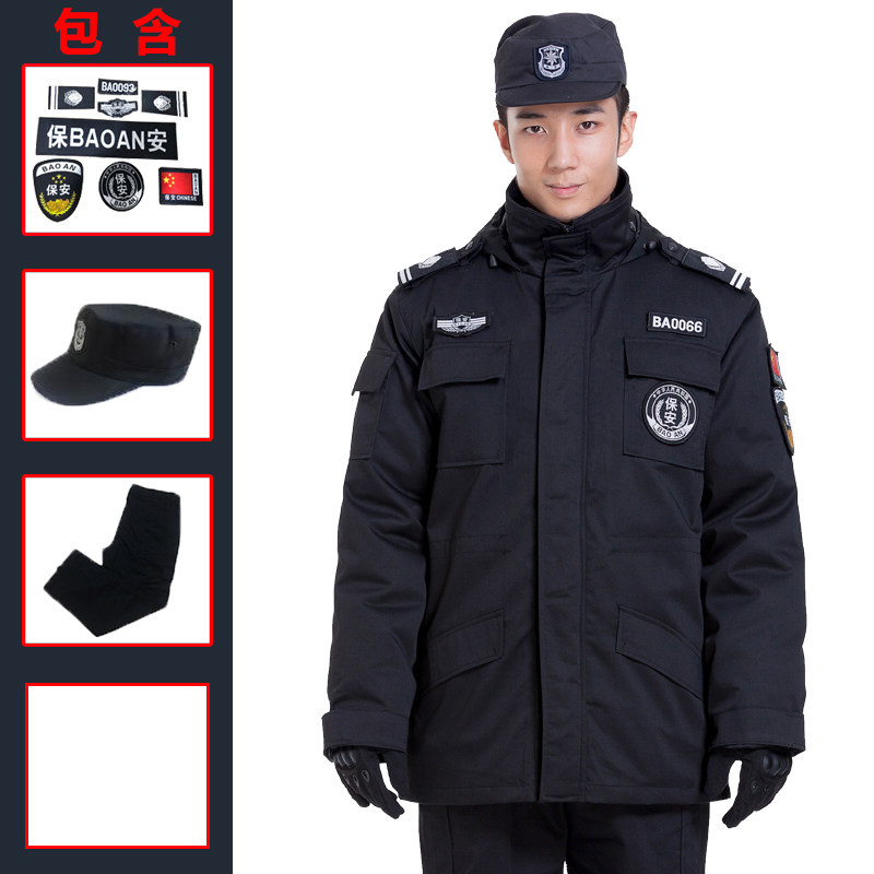 Security cotton-padded clothing multi-functional cold jacket male winter thick black overalls set training coat winter jacket