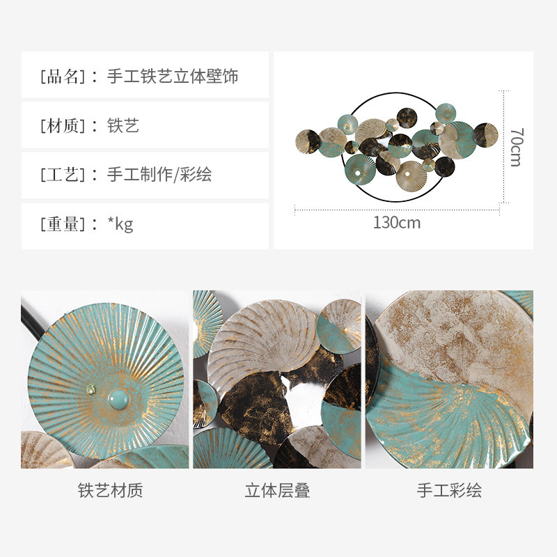 New Chinese style wrought iron wall hanging wall decoration living room background wall decoration pendant bedroom home accessories three-dimensional metal wall decoration