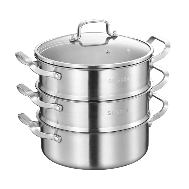 Germany 304 stainless steel steamer three-layer thickened steamer Home 3 layer 2 layer multi-layer steamer import steamer 40cm