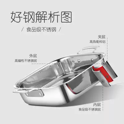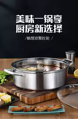 Hot pot 304 stainless steel square hot pot household thick soup pot Yuan Erwei grid Tai chi pot Stainless steel hot pot pot