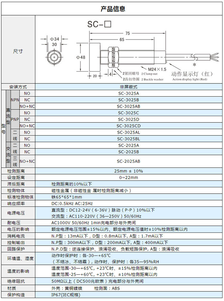 Hugong big head SC-3025A proximity switch three-wire npn normally open 24v DC M24 sensing distance 25mm