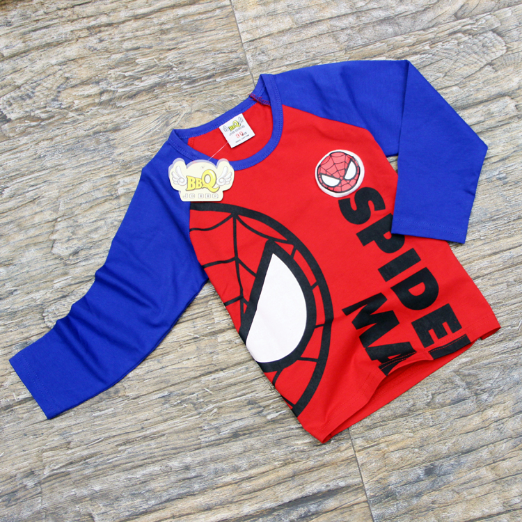 2019 Korean version Children's autumn clothes new JCBBQ cartoon Spiderman printed T-shirt pure cotton round collar long sleeve inner lap