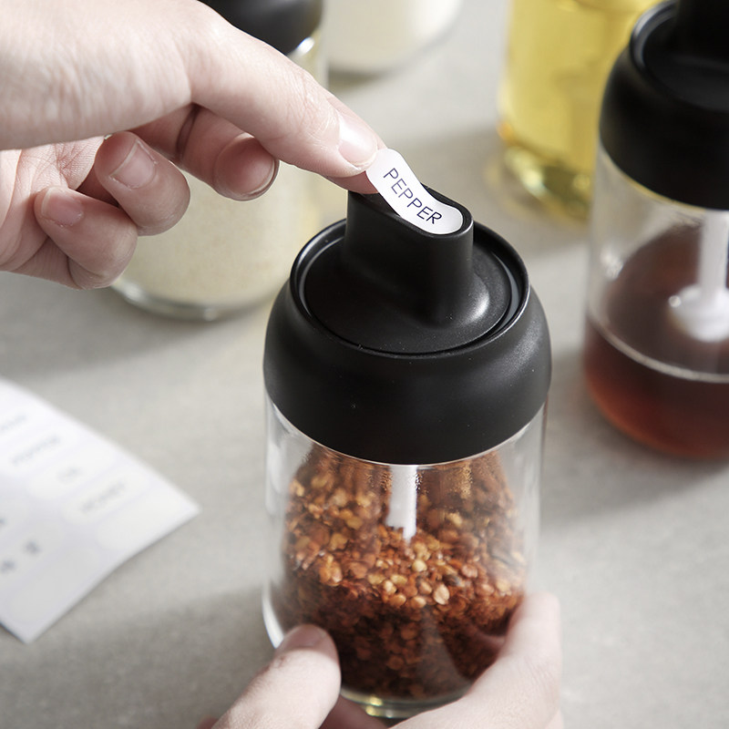 Seasoning box Kitchen with spoon seasoning pot set Oil brush pot Honey seasoning pot Moisture-proof glass sealed seasoning pot