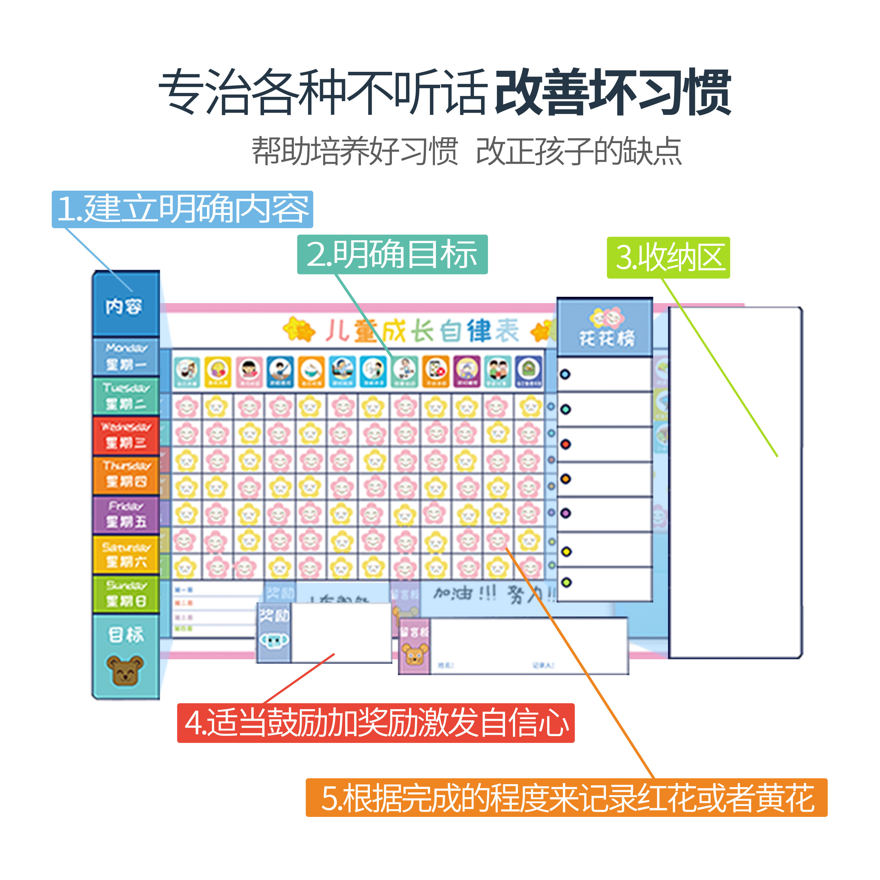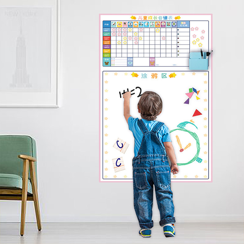 Magnetic cat child growth self-discipline table Magnetic graffiti wall plan table Manage time Baby punch card reward sticker points Learning life record table Good habits