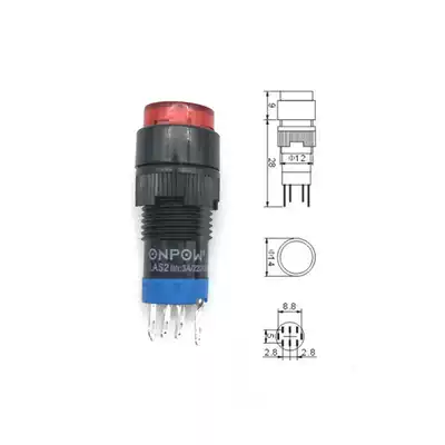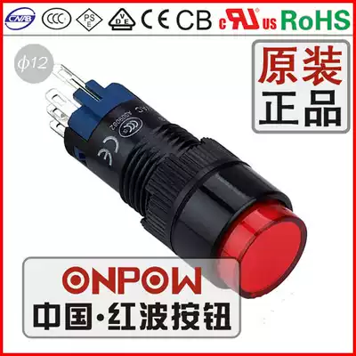 ONPOW red wave button 12mmLAS2Y-11 Start stop switch reset with light self-locking LED highlight