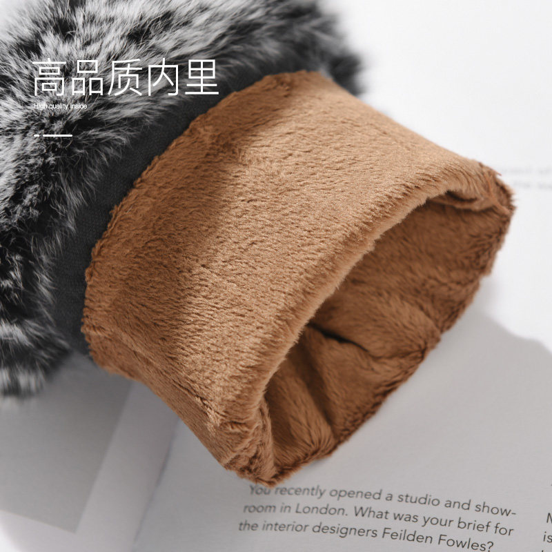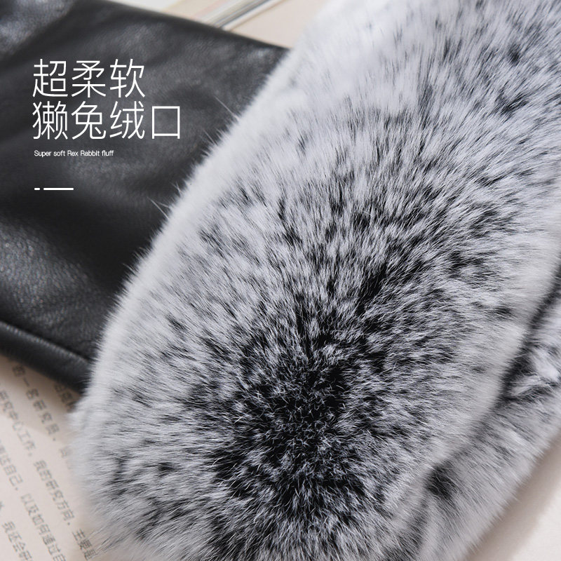 Hengyuanxiang leather gloves for women in autumn and winter warm padded and velvet cute Rex rabbit hair driving sheepskin gloves for women in winter