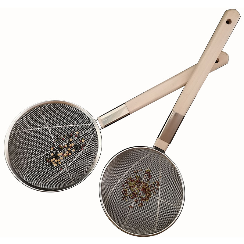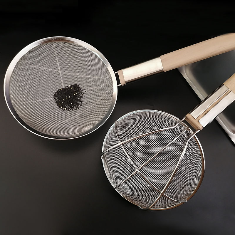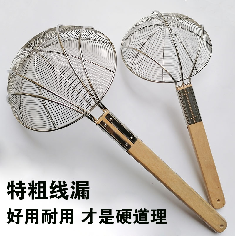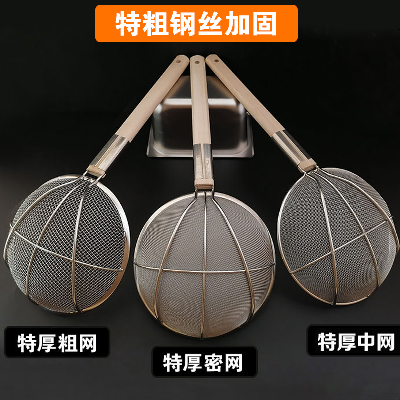Stainless steel fishing fence colander frying filter Large mixing surface leakage net Kitchen commercial ultra-fine household wooden handle skimmer