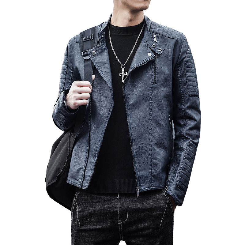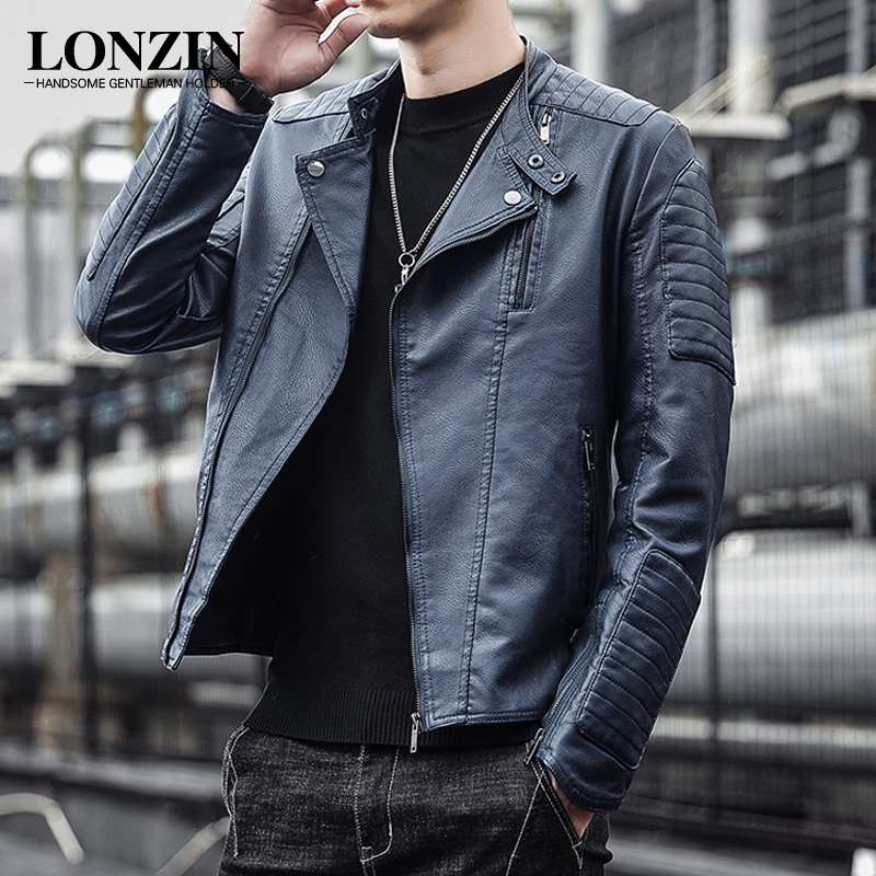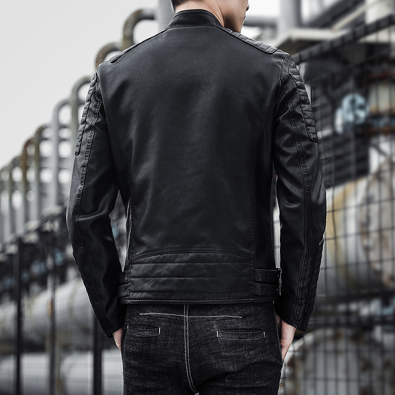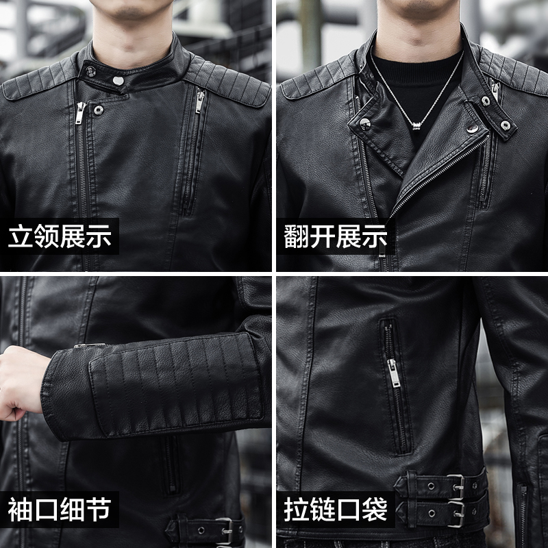 Leather clothes men trend Korean handsome simulation leather jacket lid-collar zipper fitting locomotive coat