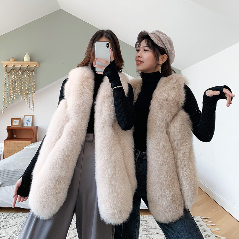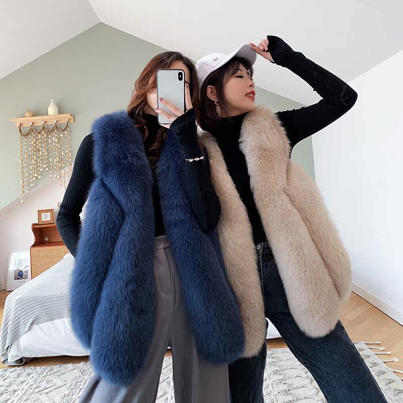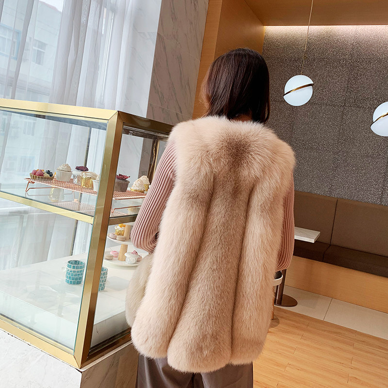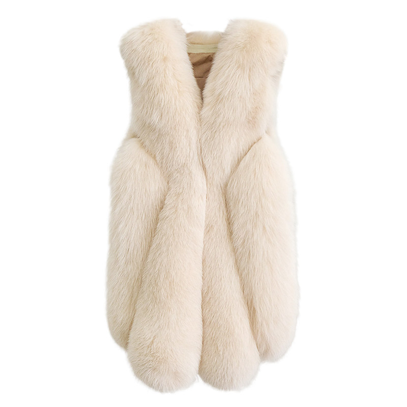 Imported whole leather fox fur vest women's medium and long version fur vest slim fit and thin Haining 2022 winter new style
