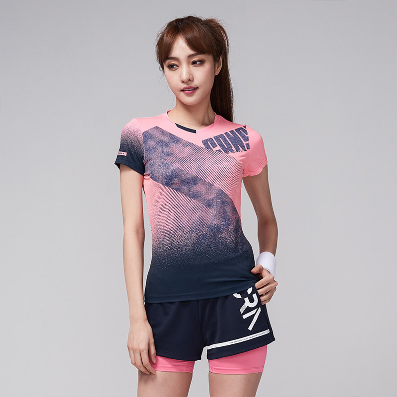 Korean can Lean badminton suit men and women short sleeve breathable speed dry suit lovers stylish and skinny sportswear