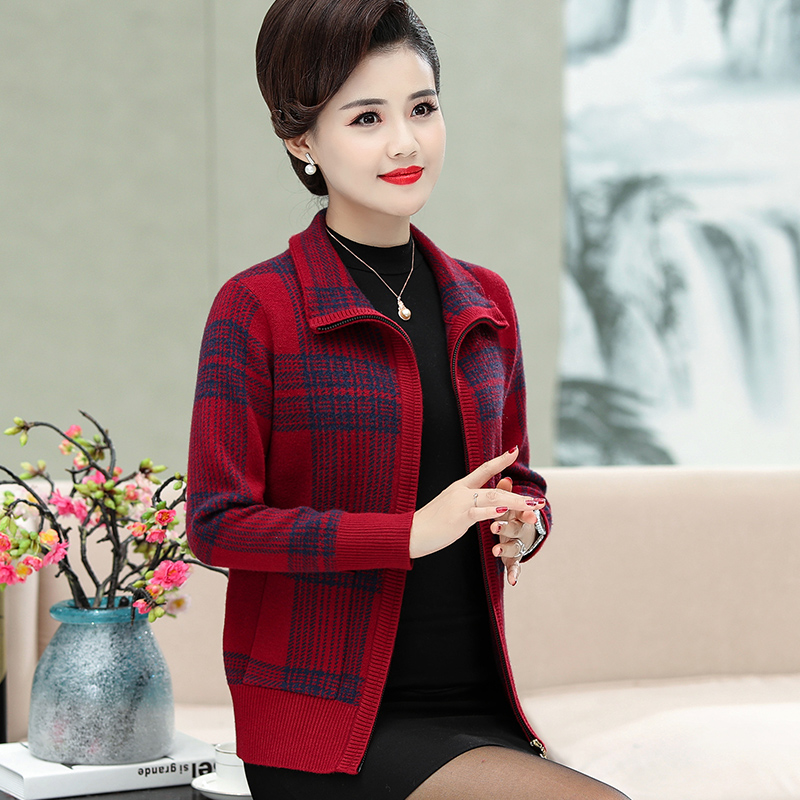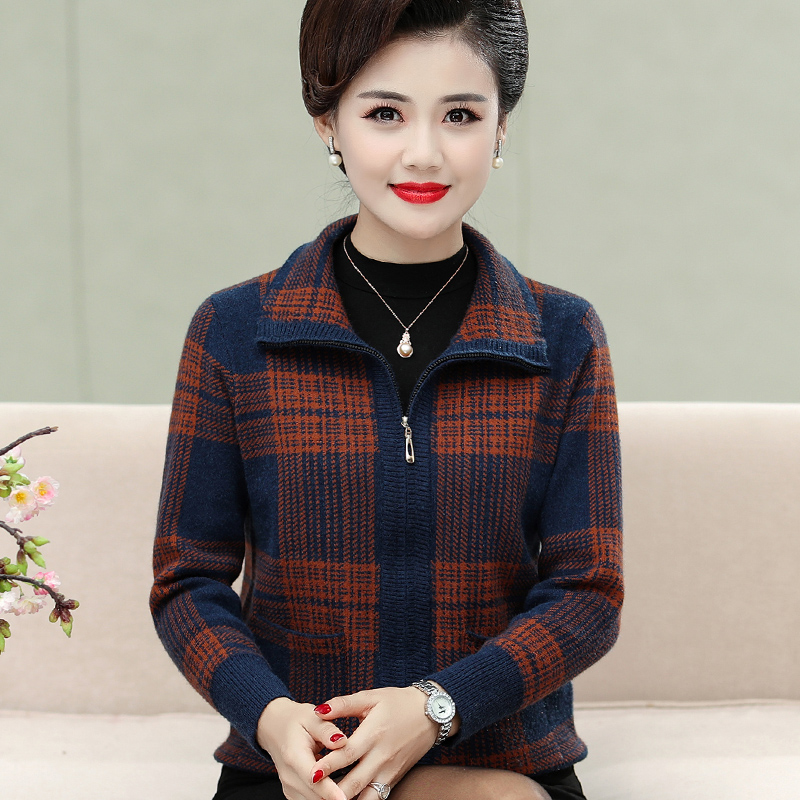 Mother's Spring and Autumn Coat Lapel Jacket Two-Piece Suit for Middle-aged and Elderly Women's Spring Dress Foreign-style Plaid Autumn Dress