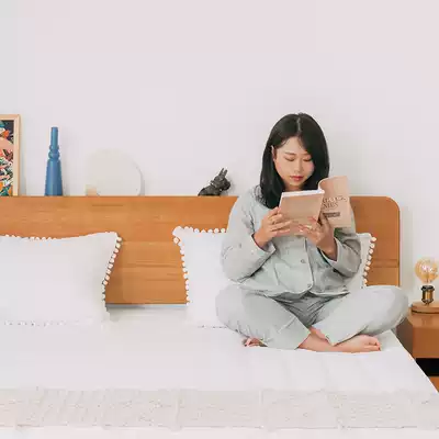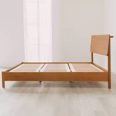 Fancy Nordic solid wood bed modern small apartment simple Japanese style 1 8 m double bed cherry wood Master Bedroom 1 5m